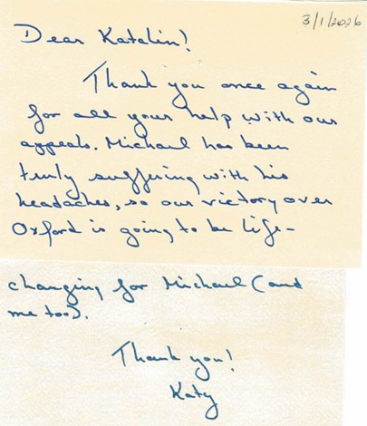 Thank you so much for all that you have accomplished on my behalf. You were a pleasure to work with. You were unrelenting in dealing with bureaucries and the dreaded insurance companies. I never could have managed without you!